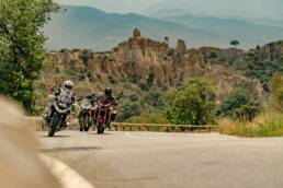 Chaque sortie est aussi une opportunité de photographie. J’aime capturer l’action : le motard en pleine prise d’angle dans un virage serré, la poussière soulevée sur un chemin, le contraste entre la moto et un paysage sauvage. Mais le lifestyle n’est jamais loin : un café au bord de l’eau, un coucher de soleil sur la route, un moment partagé avec d’autres passionnés… Ces images racontent plus que la moto : elles racontent l’émotion et l’expérience vécues.