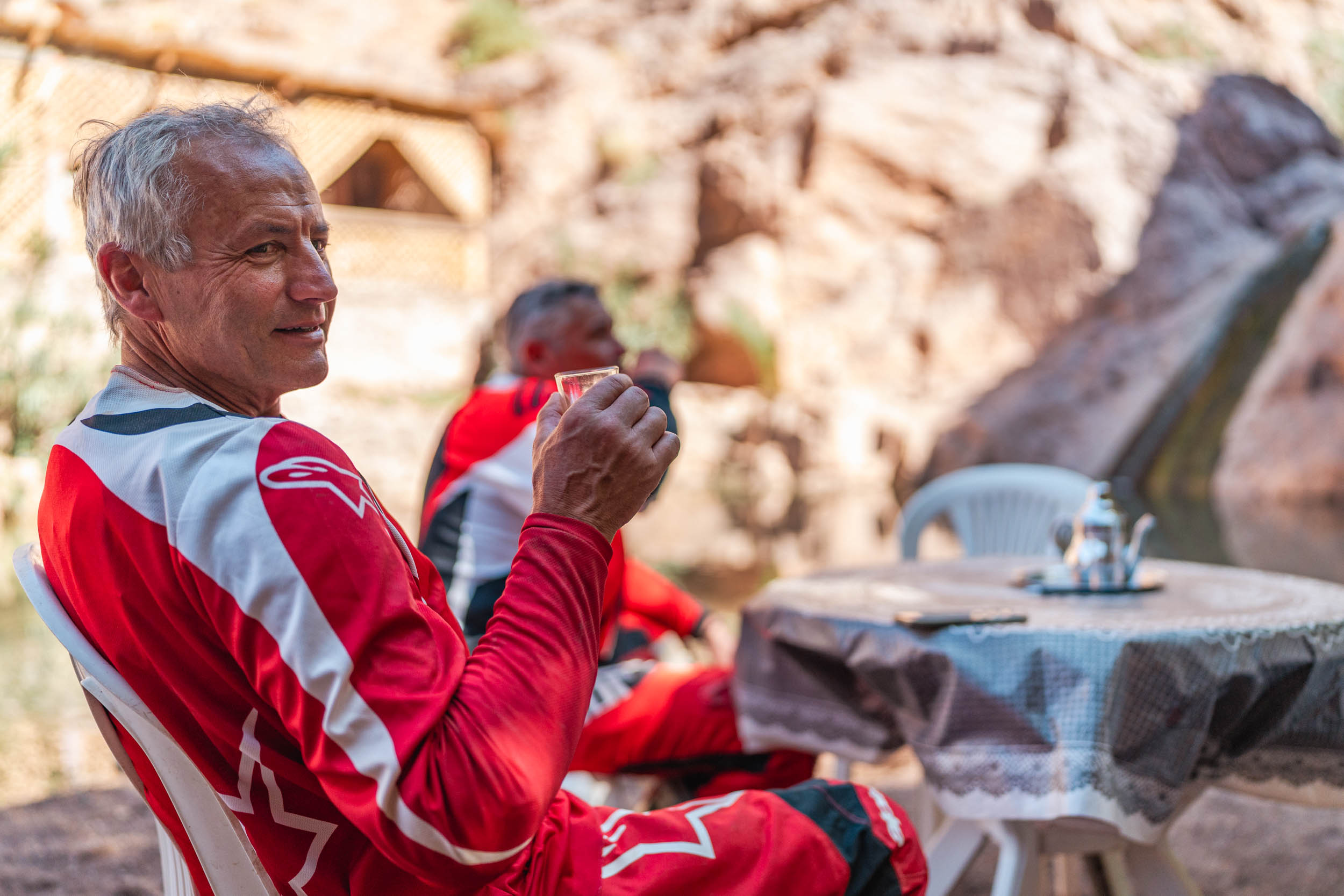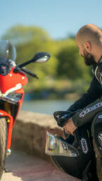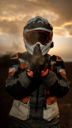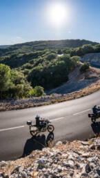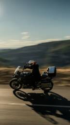 Chaque sortie est aussi une opportunité de photographie. J’aime capturer l’action : le motard en pleine prise d’angle dans un virage serré, la poussière soulevée sur un chemin, le contraste entre la moto et un paysage sauvage. Mais le lifestyle n’est jamais loin : un café au bord de l’eau, un coucher de soleil sur la route, un moment partagé avec d’autres passionnés… Ces images racontent plus que la moto : elles racontent l’émotion et l’expérience vécues.